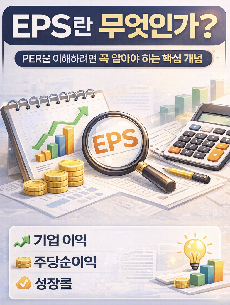 바로 EPS입니다. EPS는 기업이 얼마나 돈을 잘 벌고 있는지 보여주는 대표적인 지표입니다. 특히 PER을 계산할 때 반드시 사용되는 지표이기 때문에 주식 초보 투자자라면 꼭 이해해야 합니다.